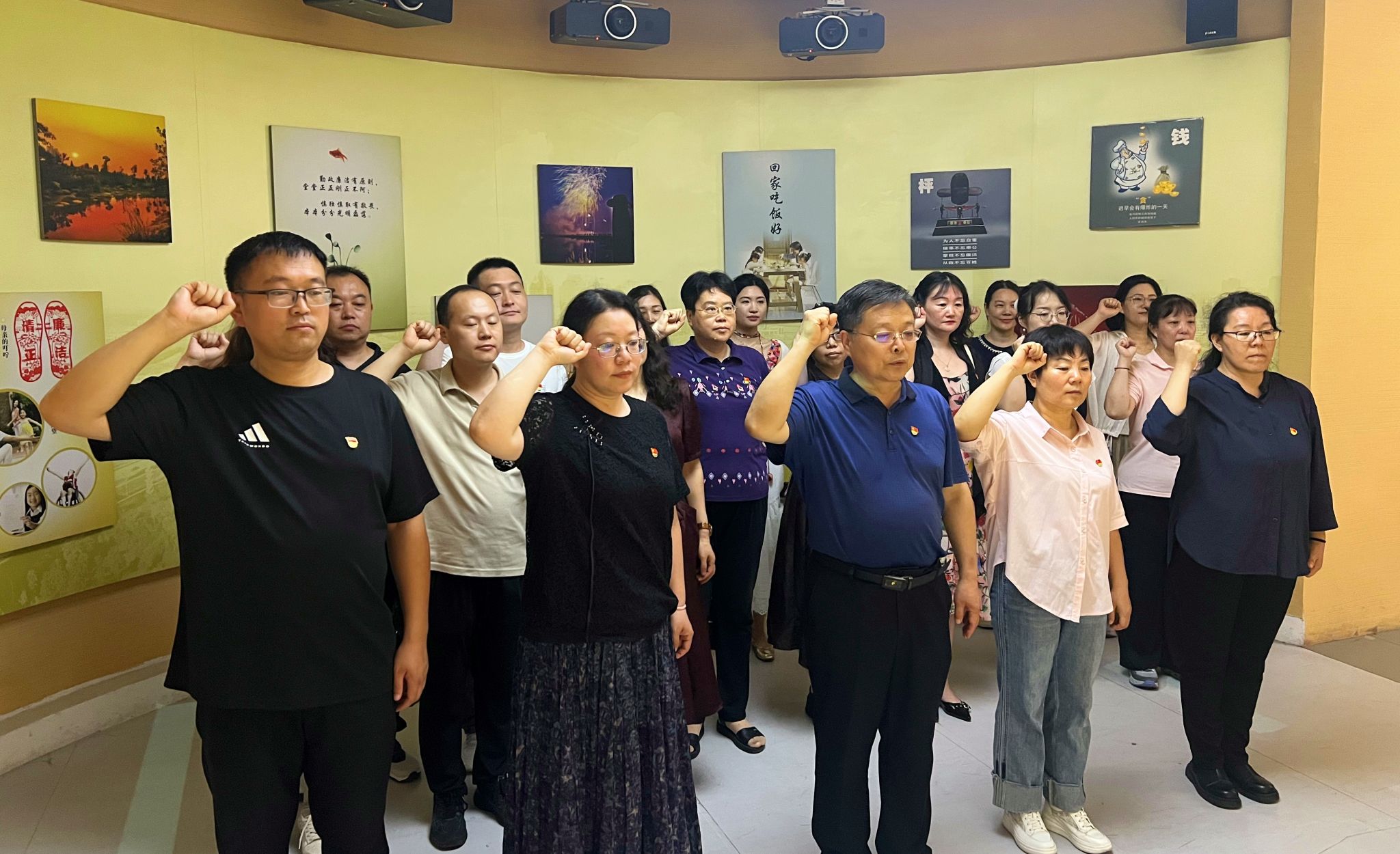 在讲解员的引导下,党员干部依次参观了“廉清气正、 坐言起行”,“勤廉史迹、天下为公”,“精英楷模、先进榜样”,“夯实基础、筑牢防线”,“长效机制、蔚然成风”五个篇章。参观即将结束时,全体党员面向党旗庄严宣誓,重温入党誓词,进一步增强了党员干部的责任感与使命感。