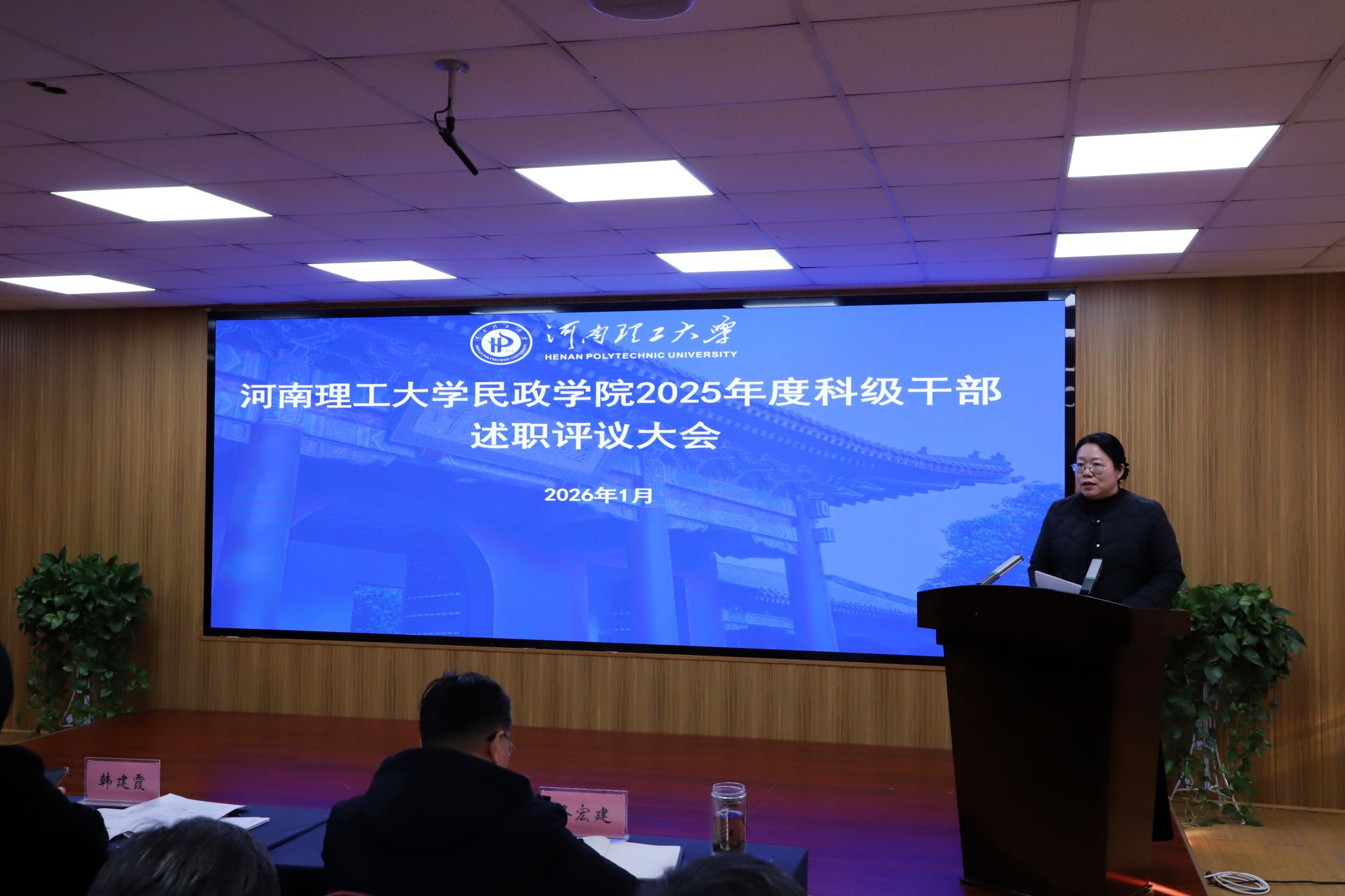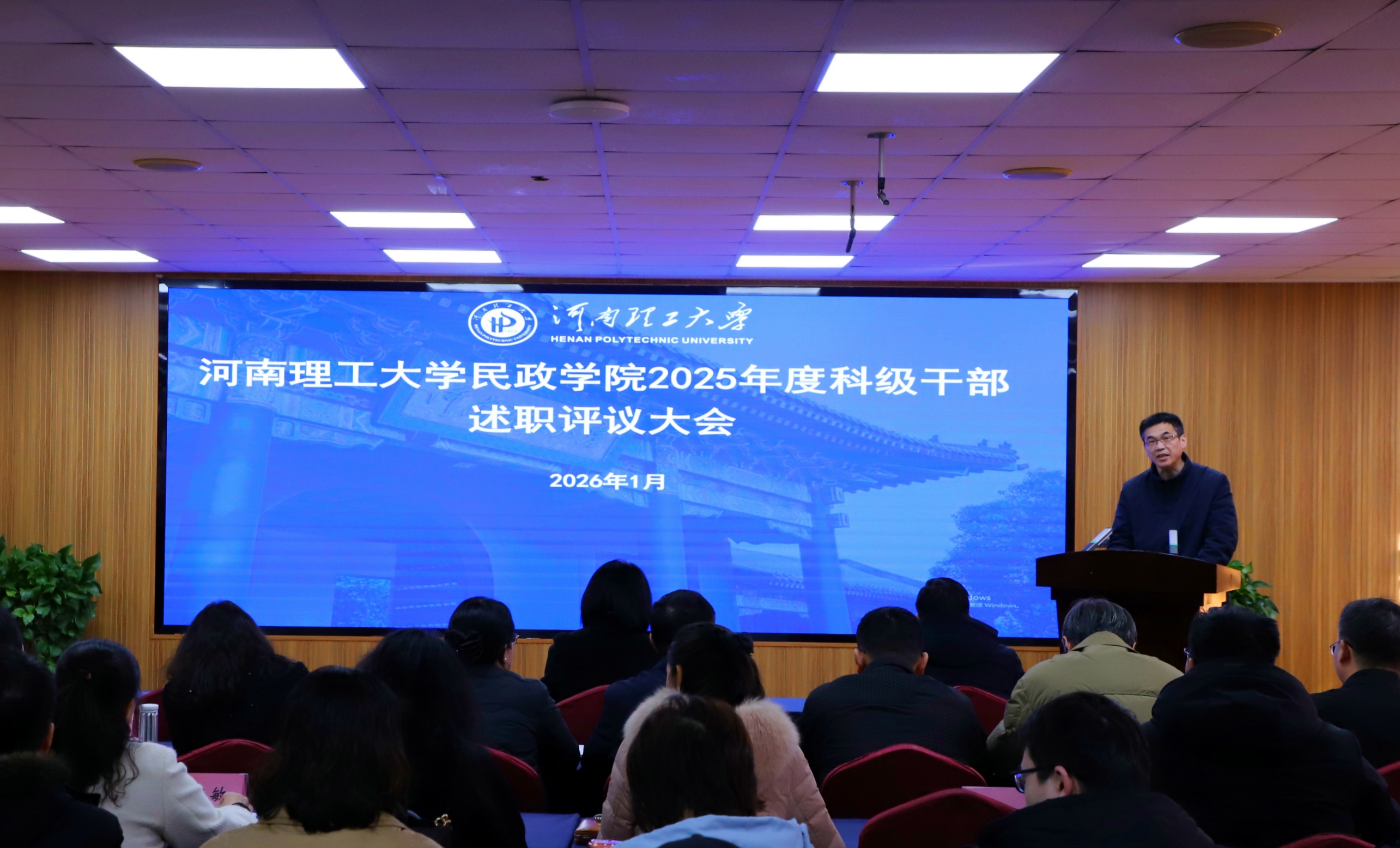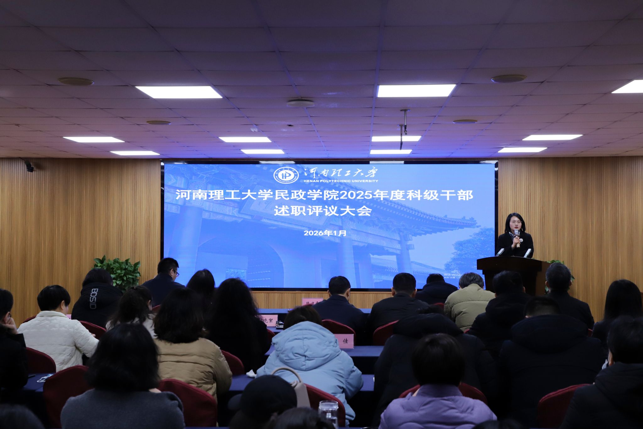 为加强科级干部队伍建设、总结年度工作成绩、凝聚发展共识,1月6日,我院召开2025年度科级干部述职评议大会,会议由学院党委副书记、纪委书记于江主持,学院全体教职工参加会议。